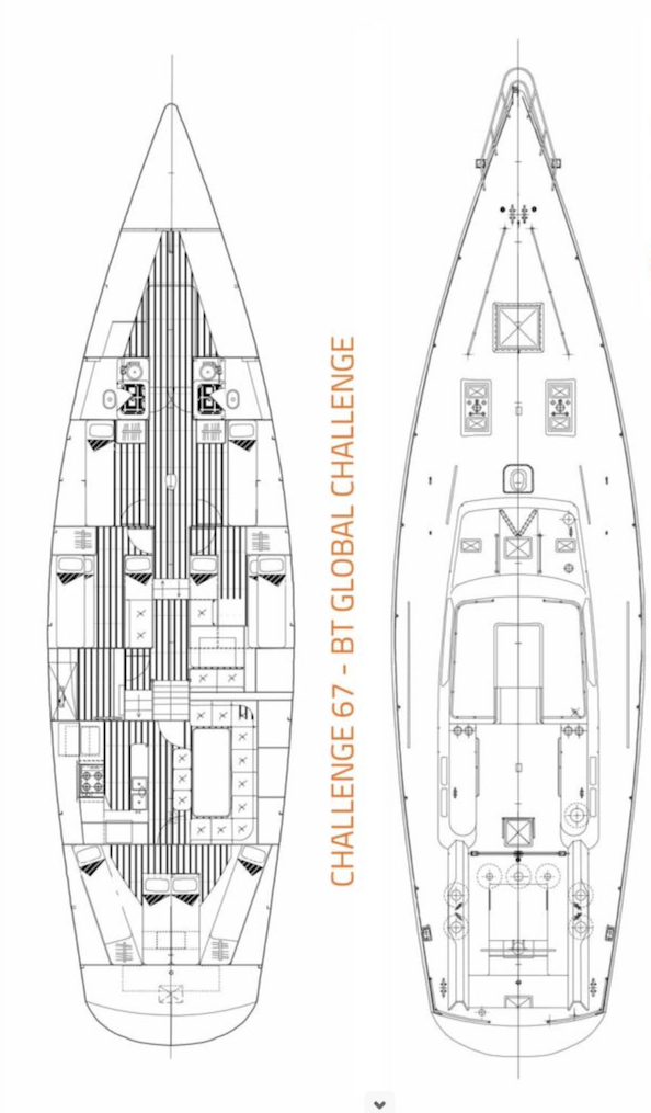 A 21m (67 feet) vessel, one of fourteen built for the BT Global Challenge, the crewed round-the-world race against the prevailing winds. The majority of these boats still sail the world’s oceans today. This large monohull is an extremely seaworthy, one-design cruising yacht.